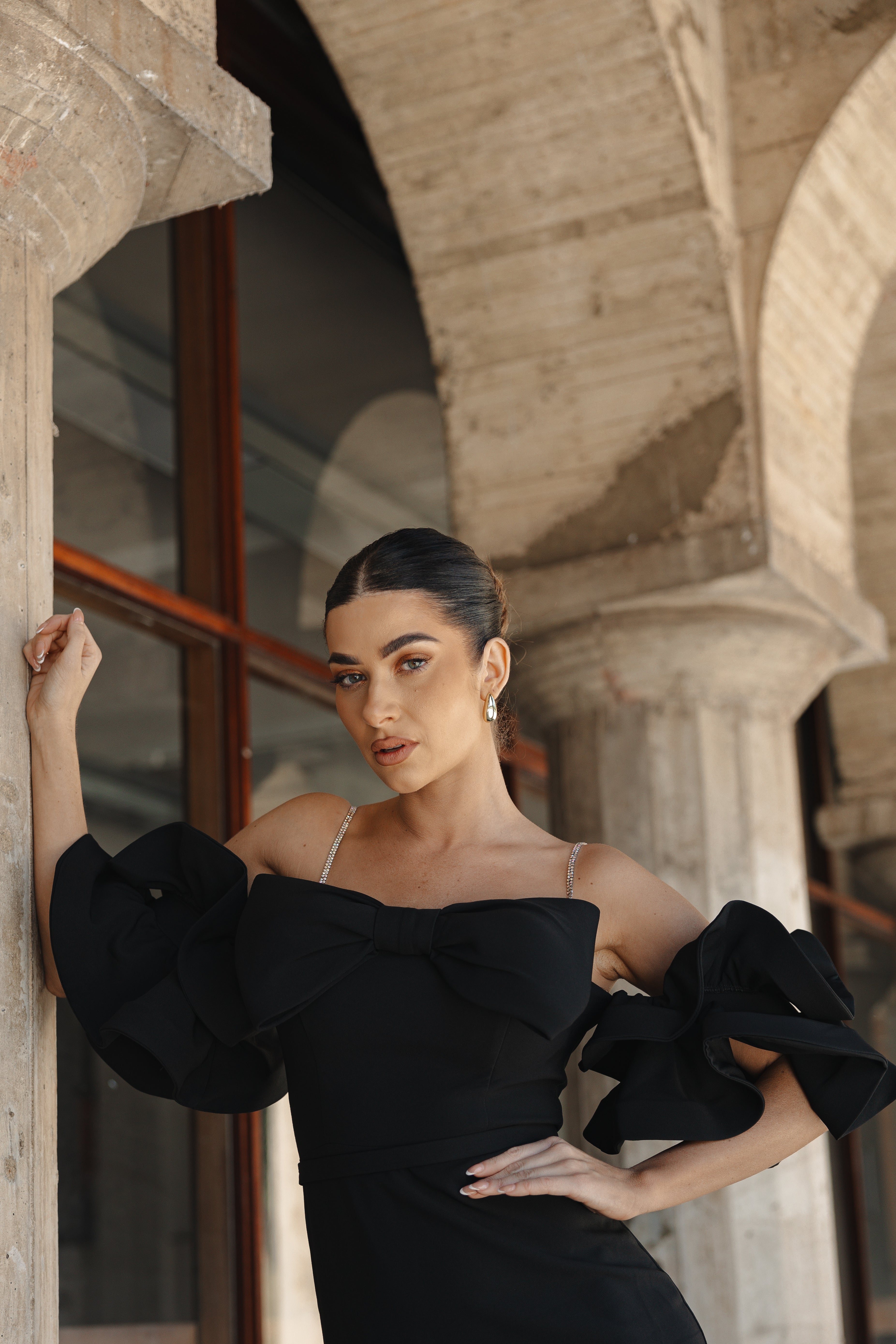 Rose Whisper Midi Mono-Sleeve Dress